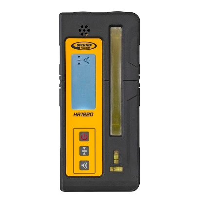 El receptor láser Spectra Precision® HR1220 detecta los rayos láser rojos y verdes generados por niveles láseres de líneas cruzadas, incluidos los modelos LT52R, LT52G, LT56 y LT58G. El receptor puede ampliar el rango de trabajo en interiores de estos láseres de líneas cruzadas, así como aumentar la versatilidad al permitir el uso en exteriores.